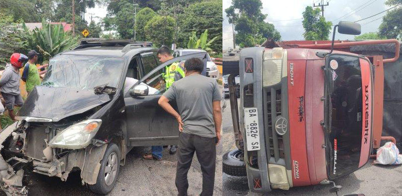 PADANGPANJANG, METRO–Kecelakaan lalu lintas yang melibatkan satu mobil Toyota Avanza dengan truk Toyoya Dyna terjadi di kawasan Jalan Bypass, Kelurahan Ganting, Kecamatan Padang Panjang Timur, Kota Padangpanjang, Kamis (9/5) sekitar pukul 12.10 WIB.