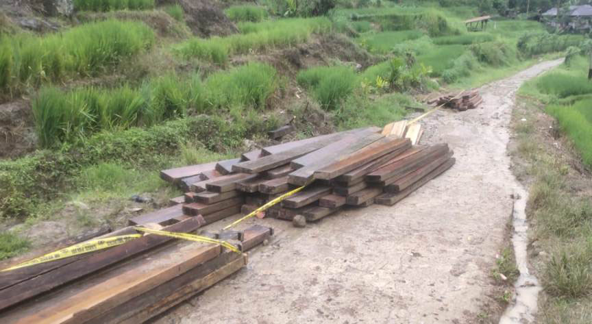 Sayangnya, saat petugas tiba di lokasi, tidak ditemukan satu orang pun dan hanya ada tumpukan kayu. Diduga, kayu-kayu balok hasil illegal logging yang akan diangkut oleh pemiliknya, namun batal gegara sudah keburu didatangi Polisi.