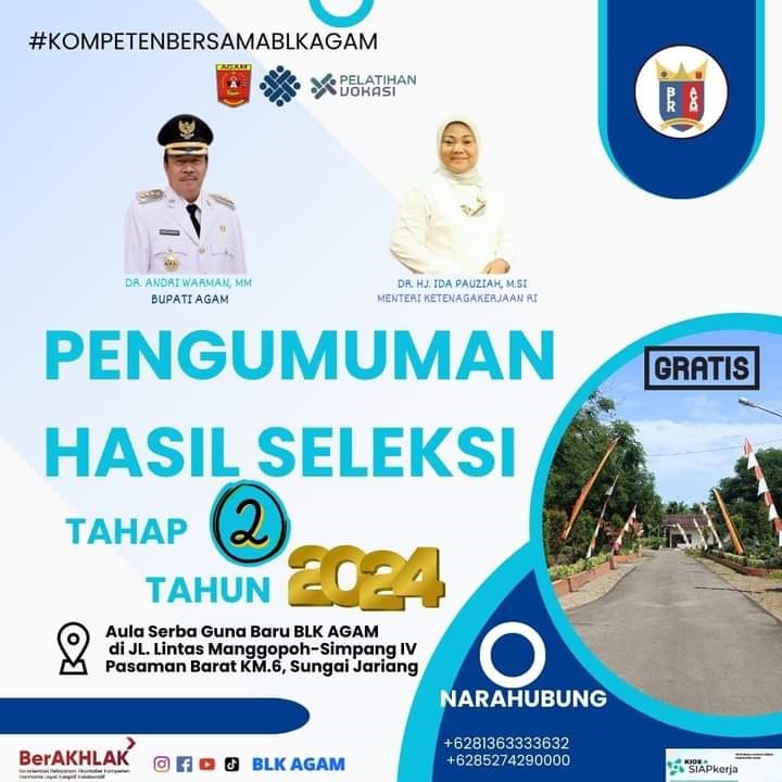 AGAM, METRO–Sebanyak 48 calon peserta Pelatihan Berbasis Kompetensi (PBK) tahap II di Kabupaten Agam, dinyatakan lulus seleksi.