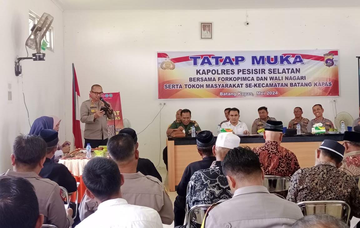 Dalam kegiatan tatap muka Kapolres Pessel menyampaikan beberapa hal dihadapan Forkopimca Batang Kapas, berkerjasama dalam perkembangan Kasus/kejadian yang menonjol di Wilayah Kabupaten Pesisir Selatan.