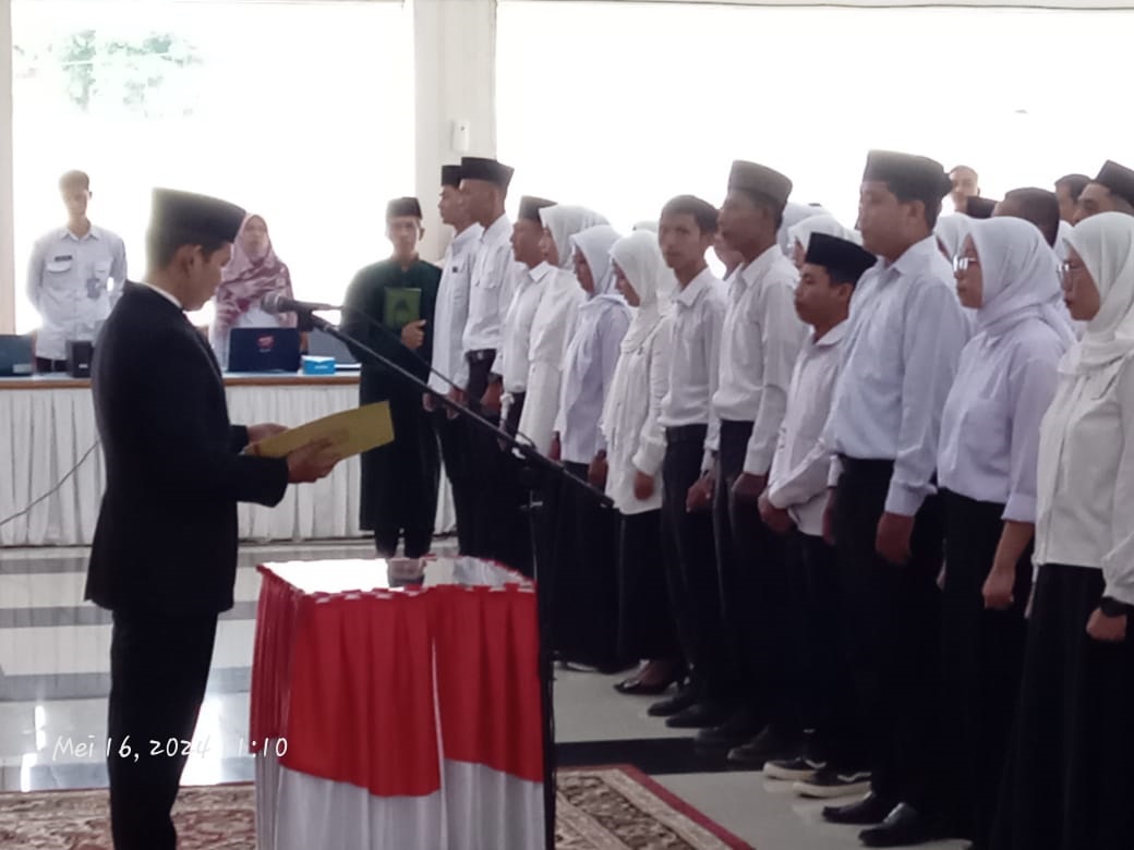 PELANTIKAN— Ketua KPU Agam Herman Susilo sedang melantik dan mengambil sumpah 80 anggota PPK pemilihan gubernur dan wakil gubernur, bupati dan wakil bupati setempat pada 2024 di Balairung Rumah Dinas Bupati Agam, Kamis (16/5).