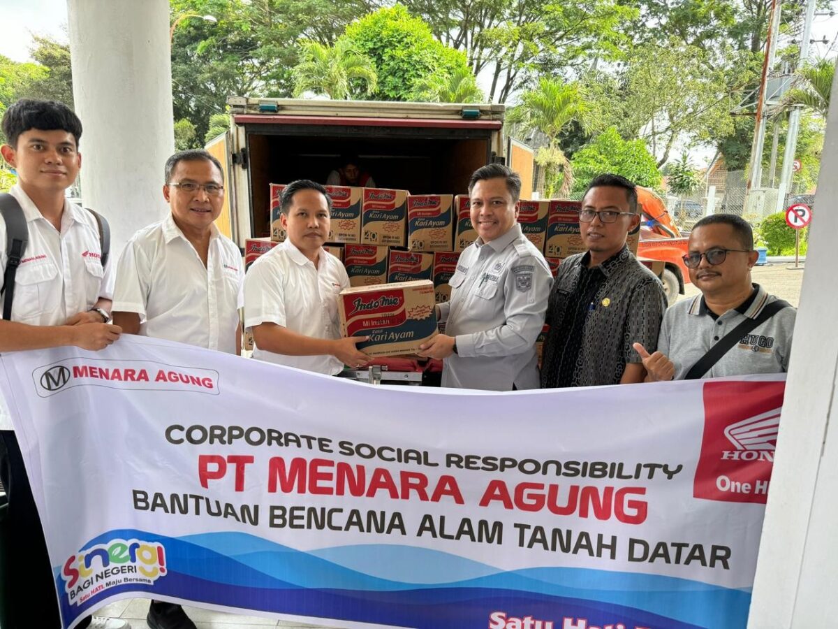 Bantuan yang disalurkan oleh Menara Agung kepada Dinas Sosial Kabupaten Tanahdatar untuk didistribusikan ke masyarakat terdampak berupa 100 dus mi instan. Bantuan ini merupakan bagian dari program Corporate Social Responsibility (CSR) perusahaan.