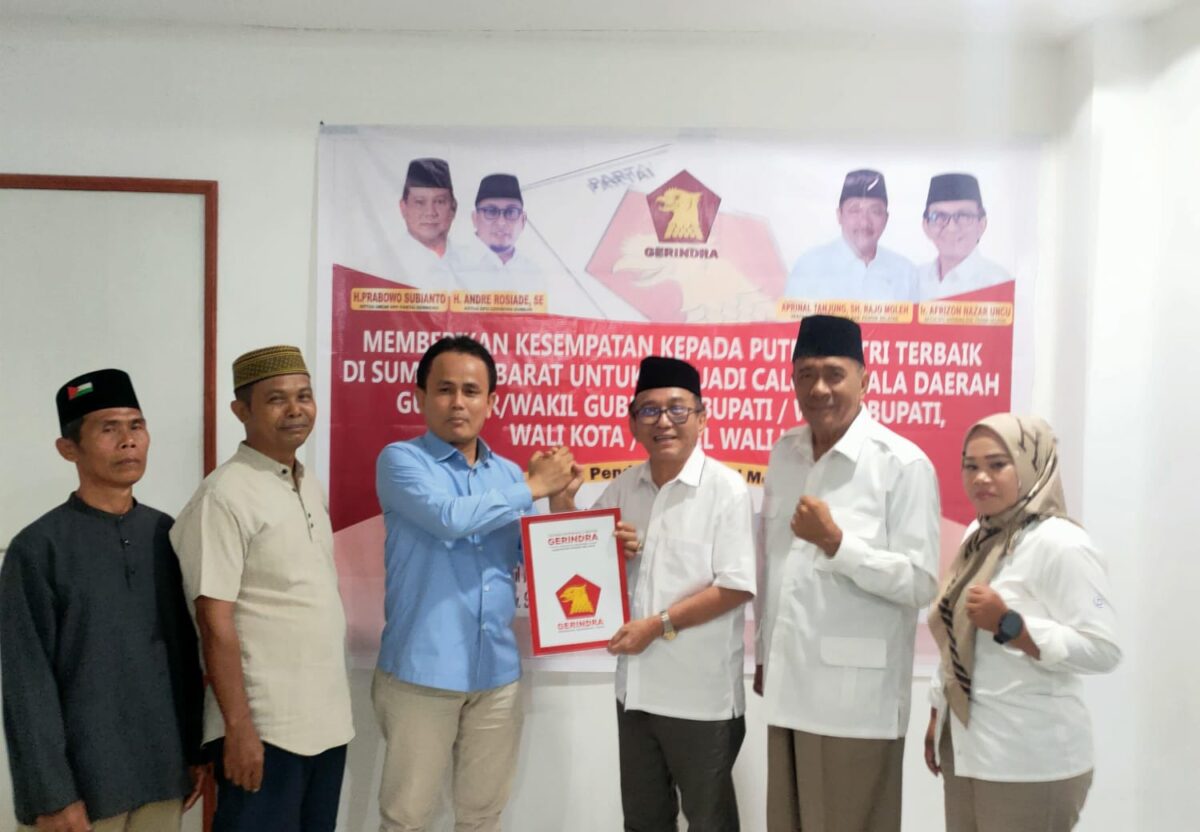 PESSEL METRO–Amran Tono,SE kader Partai Gerindra ini terpanggil maju di Pilkada serentak periode 2024 – 2029, terpanggil maju sebagai bakal calon bupati Pesisir Selatan.