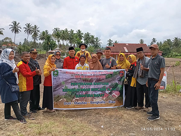 Donasi diserahkan langsung pada korban bencana di Tanahdatar seperti, Nagari Sungai Jambu, Kecamatan Lima Kaum Parambahan, Jorong Jaho Nagari Rambatan, sebut ketua KBSP AM Pelda Purn TNI Arizal, S.E. didampingi Afrizal Lelo (Penasehat KBSP AM Bengkalis), Novri (Waka KBSP AM Bengkalis), Afrita wati (Ketua Bundo Kanduang KBSP AM Bengkalis) Gusmaningsih, S.Pd (Bendahara KBSP AM Bengkalis).