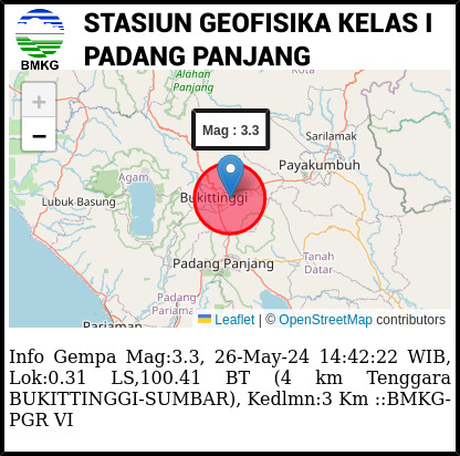 “Untuk Payakumbuh II MMI (Getaran dirasakan oleh beberapa orang, benda-benda ringan yang digantung bergoyang). Hasil pemodelan menunjukkan bahwa gempa bumi ini tidak berpotensi Tsunami,” kata Suaidi.