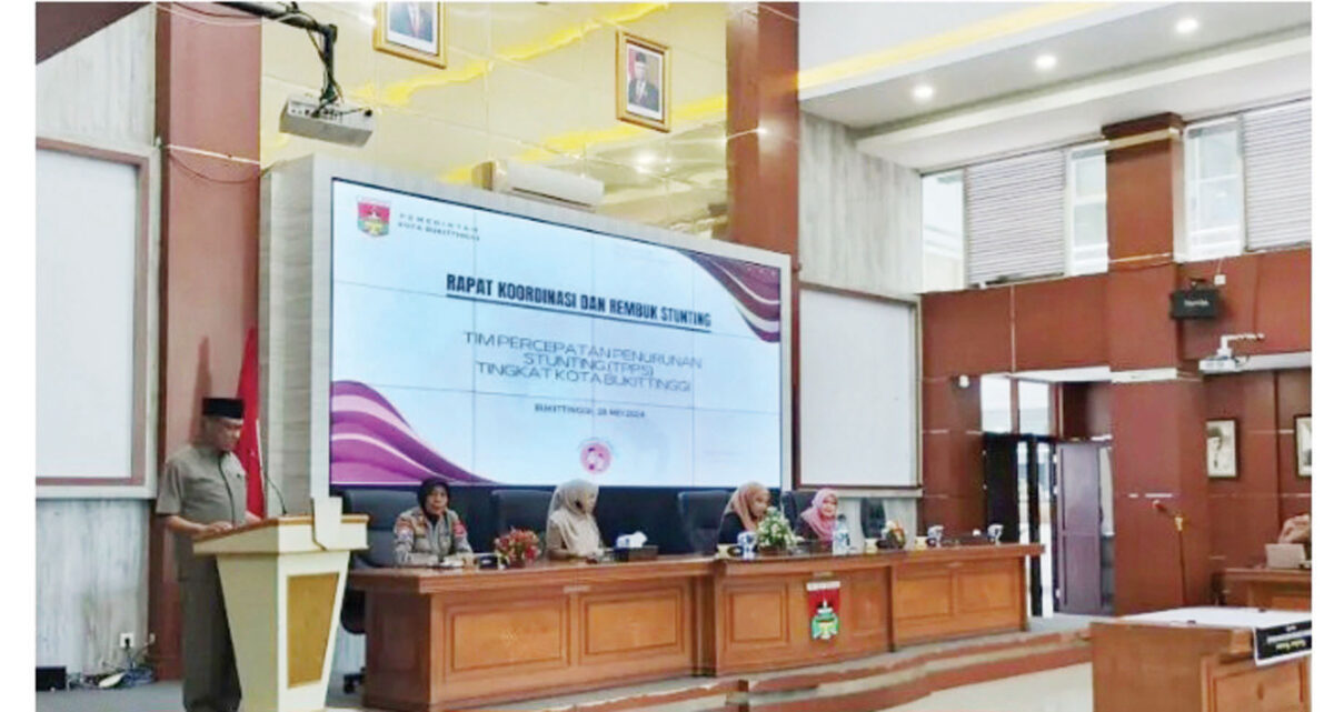 BUKITTINGGI, METRO–Pemerintah Kota Bukittinggi menggelar Rapat Koordinasi dan Rembuk Stunting dalam rangka upaya percepatan penurunan stunting tingkat Kota Bukittinggi Tahun 2024.