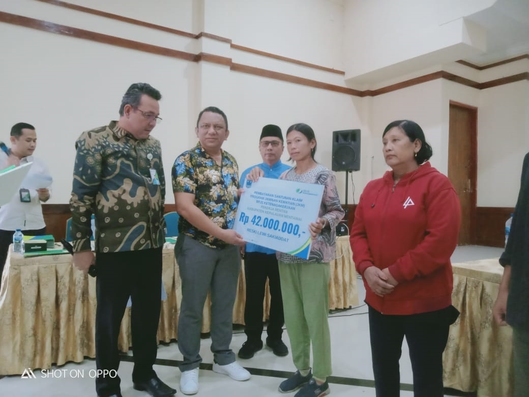 MENTAWAI, METRO–Pemerintah daerah bersama BPJS Mentawai melakukan kerjasama, untuk itu PJ. Bupati Kabupaten Kepulauan Mentawai, Fernando JS secara resmi membuka kegiatan, penyelenggara jaminan sosial ketenagakerjaan dan sekaligus juga penyerahan secara simbolis santunan kematian pekerja rentan di wilayah Kabupaten Kepulauan Mentawai.