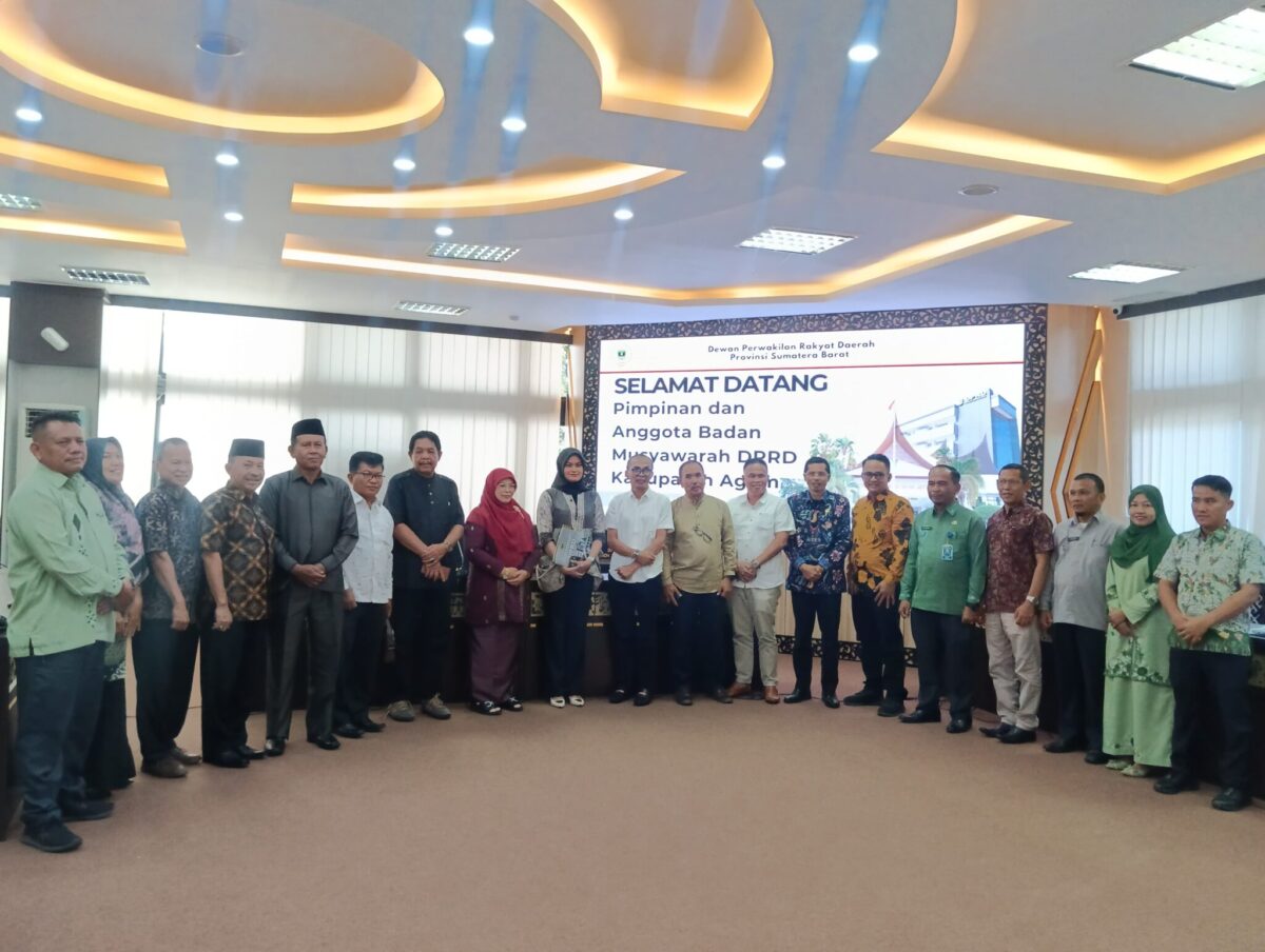 PADANG, METRO–Memperkaya wawasan dan strategi mengenai pelaksanaan tugas pokok dan fungsi DPRD, anggota Badan Musyawarah (Bamus) DPRD Agam melakukan kunjungan kerja ke DPRD Provinsi Sumatera Barat.