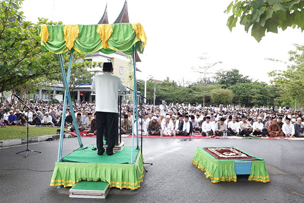 DIPADATI JAMAAH— Ribuan jamaah shalat Idul Adha memenuhi lapangan Balai Kota Payakumbuh, Senin (17/6) pagi.