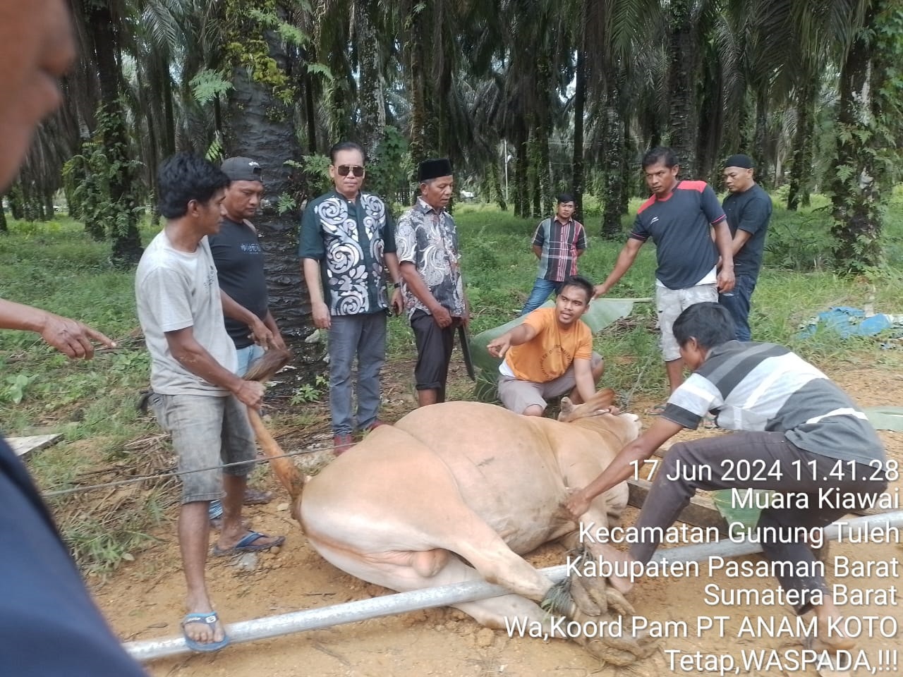 Legal humas pt anam koto, J. Tamba sedang menyaksikan penyembelihan hewan qurban yang di serahkan nya pada Dua nagari kemarin. (end)