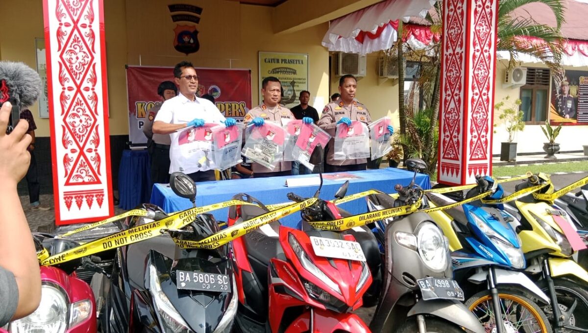 AKBP Agung menuturkan, barang bukti yang disita berupa delapan unit sepeda motor hasil curian yaitu, motor merek Honda Vario BA5806 SC  milik Syaiful Anwar, sepeda motor merk Honda Vario BA 3532 SAC milik Neneng, Honda BeAT BA 5978 SQ milik Rikim.