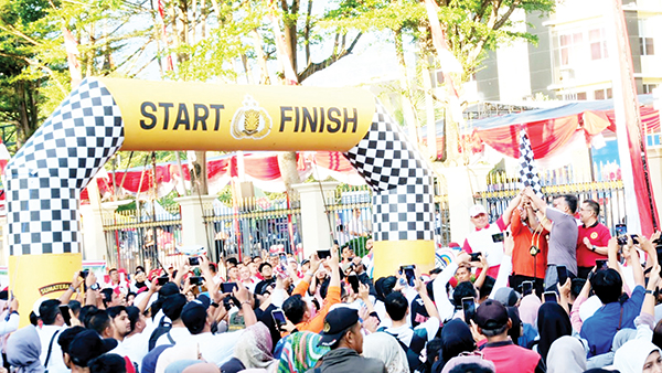 SUDIRMAN, METRO–Untuk menyemarakkan Hari Bhayangkara ke-78 yang jatuh pada tanggal 1 Juli mendatang, Polda Sumbar menggelar kegiatan jalan santai, Minggu (23/6).