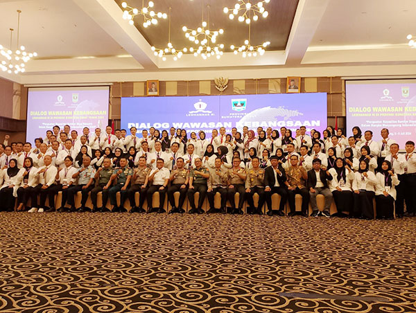 Dialog Kebangsaan Na­sional ini dilaksanakan Lemhannas RI dengan Pemerintah Provinsi Suma­tera Barat dengan tema “Penguatan Kapasitas Sumber Daya Manusia dalam rangka menyongsong Indonesia Emas 2045”, diikuti 100 peserta terdiri dari organisasi kemahasis­wa­an, pemuda, Birokrat, TNI, Polri.
