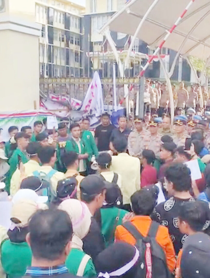 PADANG, METRO–Seratusan mahasiswa dari beberapa kampus yang tergabung dalam Aliansi Badan Eksekutif Mahasiswa (BEM) Sumatra Barat (Sumbar) menggelar aksi unjuk rasa di depan Markas Polda Sumbar, Kamis (4/7). Mereka mendesak Polda Sumbar mengusut tuntas kasus kematian Afif Maulana di bawah Jembatan Kuranji.