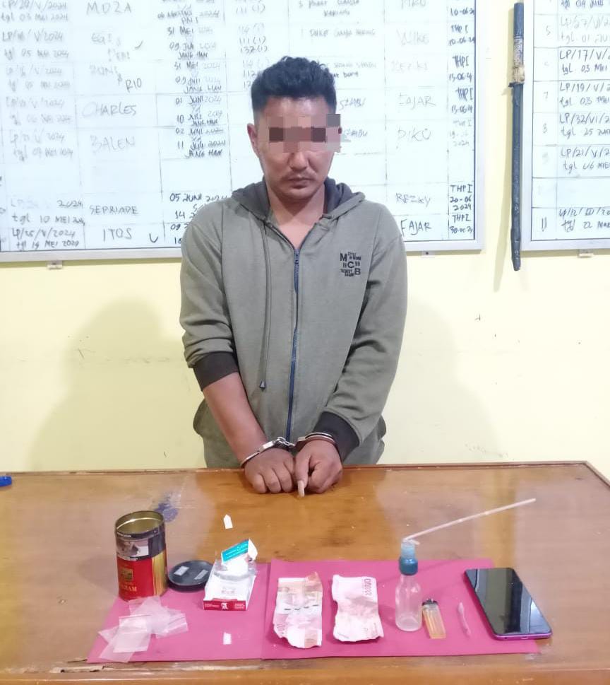 ” Disaksikan saksi masyarakat umum, dilakukan penggeledahan. Dari, penggeledahan ditemukan 1 (satu) paket kecil narkotika jenis shabu yang di simpan tersangka di dalam kotak rokok sampoerna,” ungkap Riki Yovrizal.