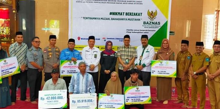 Selain launching Kampung Zakat, acara juga dirangkai dengan pendistribusian zakat reguler tahap 2 oleh BAZNAS Kota Sawahlunto serta launching penyaluran program Bapak Asuh dan Anak Stunting. (pin)