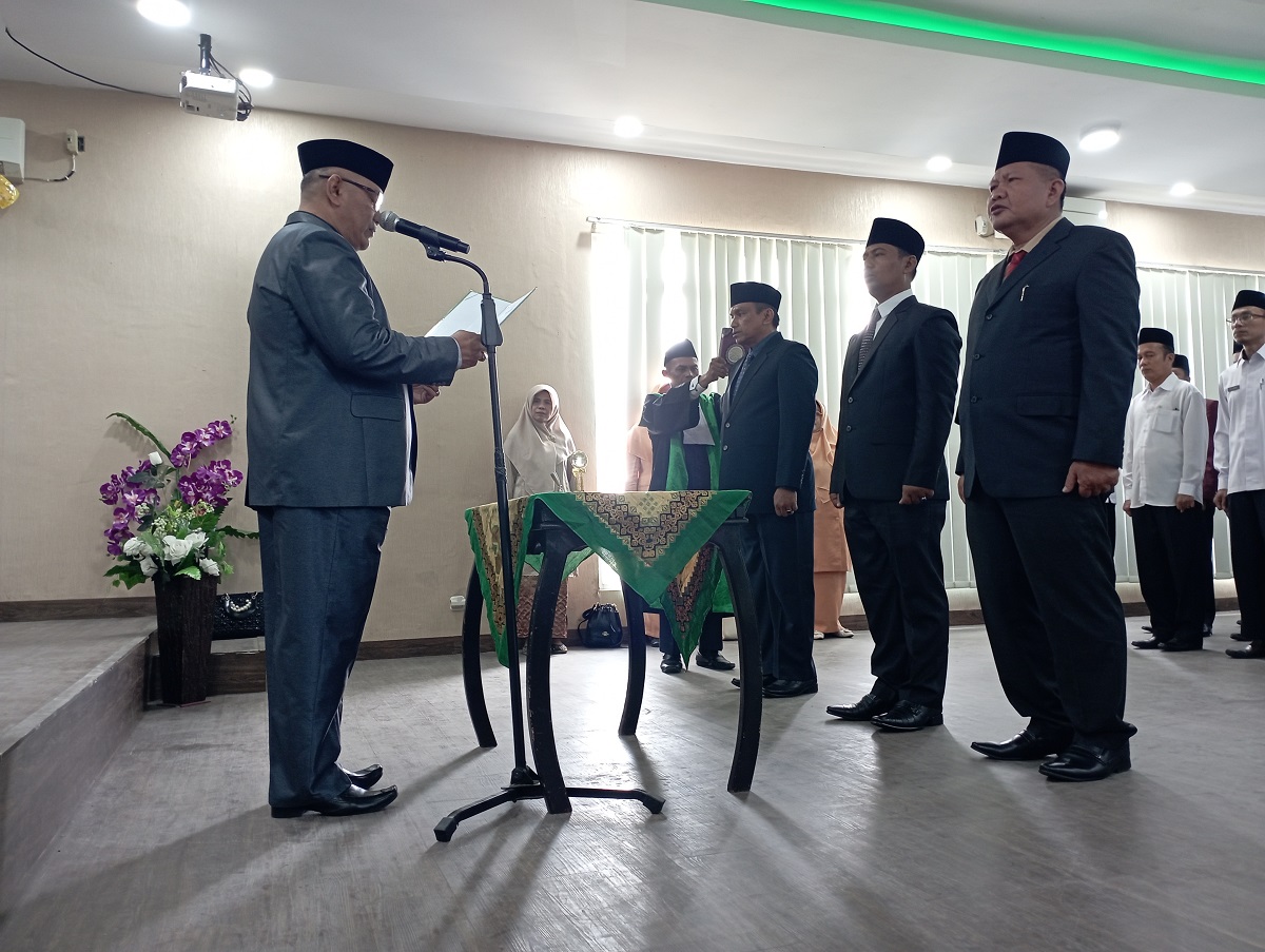 TANAHDATAR, METRO —Kepala Kantor Kemenag Tanahdatar H. Amril, S.Ag,.M.M lantik sekaligus ambil sumpah jabatan pengawas Eselon IV di lingkungan Kantor Kemenag Tanahdatar, Senin (15/7) pagi. Adapun pejabat yang di lantik tersebut adalah H. Helmi Zuldi, S.Ag,. M.Pdi sebagai Kabag TU, Bahrul Fahmi, S.Ap sebagai Kasie Penmad dan Dafrizon, S.A.g sebagai Kasie Haji.