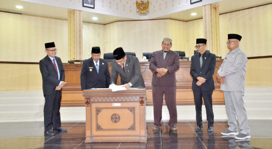 Rapat dengan agenda penandatanganan persetujuan bersama Rancangan Perda tentang RPJPD 2025-2045 itu digelar di Ruang Rapat Paripurna DPRD Kabupaten Agam, dan dipimpin langsung oleh Ketua DPRD Kabupaten Agam Novi Irwan.