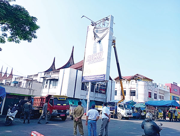 “pembongkaran konstruksi bilbor ini momennya sangat tidak tepat, nuansa politis sangat terasa,” kata salah seorang masyarakat pasar Batusangkar yang enggan namanya disebut. (ant)