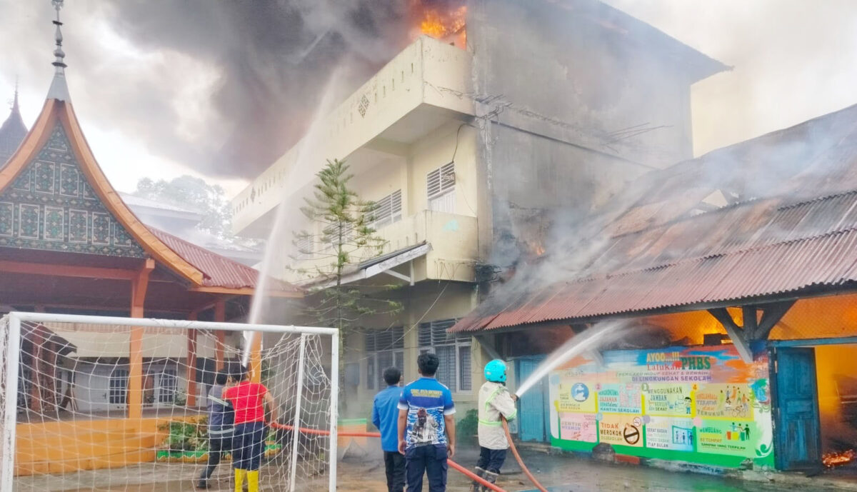 PAYAKUMBUH, METR–Dua bangunan yang berada di kompleks SMPN 1 Payakumbuh, Jalan di Jenderal Sudirman, hangus terbakar pada Sabtu (20/7) pada pukul 07.00 WIB. Mirisnya, salah saztu bangunan yang terbakar merupakan bangunan Cagar Budaya yang difungsikan sebagai aula.