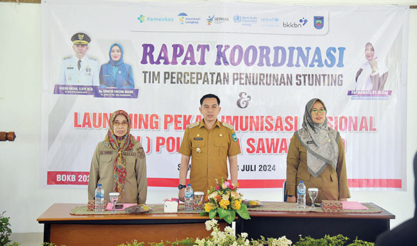 PENJABAT (Pj) Walikota Sawahlunto Fauzan Hasan, S.STP, M.Si, me­mimpin rapat koordinasi Tim Percepatan Penurunan Stunting (TPPS) di Aula IKM, pada Selasa (23/7). Pj Walikota Sawahlunto didampingi oleh Kepala Dinas Kesehatan Sawahlunto dr. Ranu Vera.