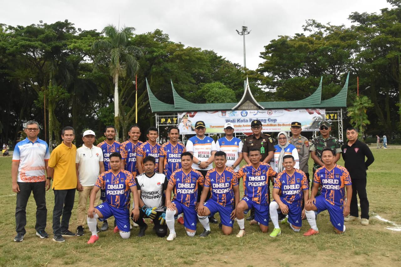 Foto bersama Pj Walikota Padang, Andree Algamar bersama tim sepakbola Dinas Pendidikan dan Kebudayaan (Disdikbud) Kota Padang.