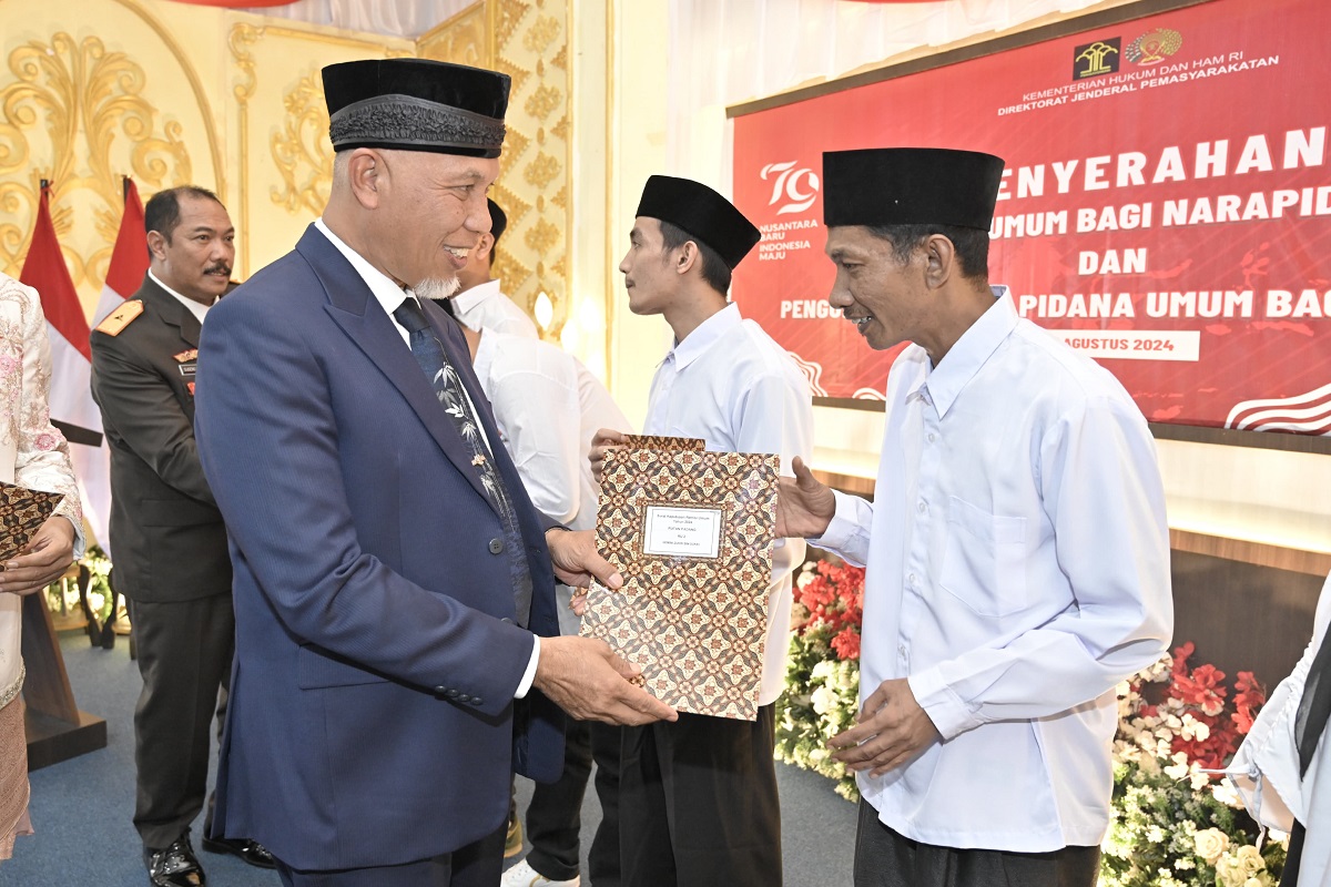 PADANG, METRO–Sebagai wujud syukur atas peringatan Kemerdekaan RI ke-79 pada tahun ini sekaligus sebagai bentuk apresiasi pemerintah terhadap Warga Binaan Pemasyarakatan (WBP), Gubernur Sumatera Barat (Sumbar), Mahyeldi Ansharullah menyerahkan keputusan pemberian remisi bagi 4.185 WBP di bawah lingkungan Kanwil Kemenkumham Sumbar, Sabtu (17/08/2024).