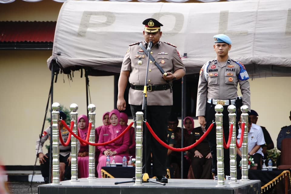 Upacara ini dipimpin Kapolres, AKBP Kartyana Widyarso Wardoyo Putro, SIK, MAP. Turut dihadiri Penjabat (Pj) Wali Kota, Sonny Budaya Putra, A P, M.Si, Wakil Pimpinan Sementara DPRD, Mar­diansyah, S.Kom, Kepala Kejaksaan Negeri, Jerniaty, MH, perwakilan Forkopimda lainnya, serta tamu undangan dari berbagai instansi.