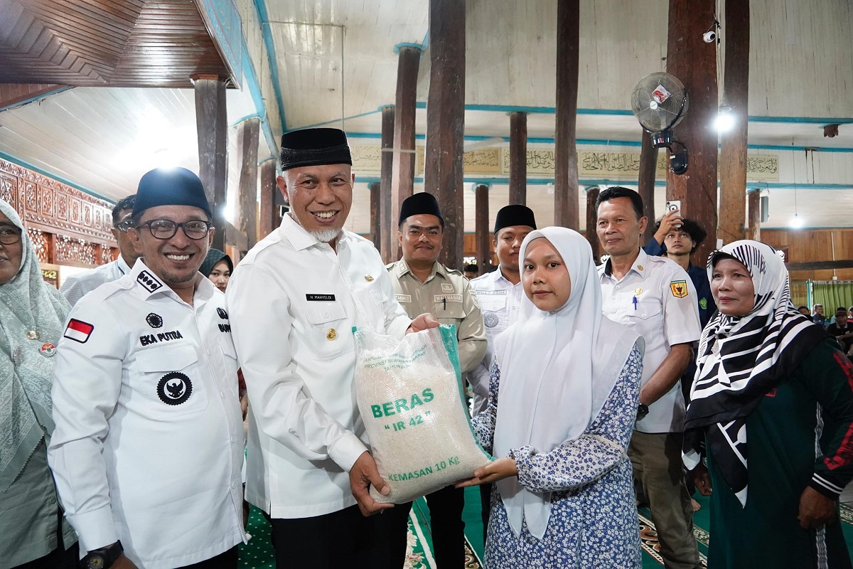 Gubernur Mahyeldi Ansarullah menjelaskan bahwa paket sembako yang diterima masyarakat Tanah Datar terdampak bencana alam, berupa beras 10 kg, minyak 4 liter, gula 2 kg dan 4 kaleng sarden.