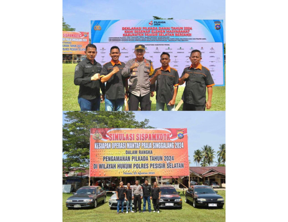 Deklarasi Pilkada Damai 2024 di gelar Jajaran Polres Pesisir Selatan, Jumat (30/8/2024) di lapangan sepak bola Pacuan Kuda, Salido, Kecamatan IV Jurai, Kabupaten Pesisir Selatan.