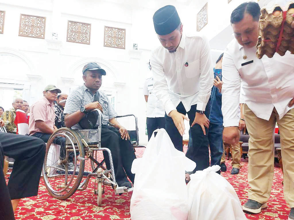 BUKITTINGGI, METRO–Pemerintah Kota Bukittinggi melalui Dinas Sosial, salurkan paket sembako untuk 280 orang penyandang disabilitas. Bantuan diberikan secara simbolis di Balairung Rumah Dinas Wako, Rabu (4/9).