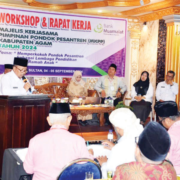 AGAM,METRO–Bupati Agam, Dr H Andri Warman MM buka secara resmi workshop dan rapat kerja Majelis Kerjasama Pimpinan Pondok Pesantren (MKPP) Kabupaten Agam tahun 2024, di Hotel Sultan, Rabu (4/9).