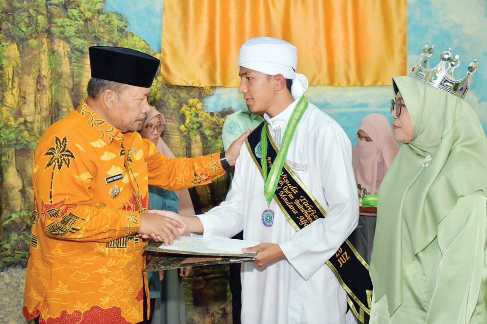 AGAM, METRO–Bupati Agam, Dr H Andri Warman mewisuda 111 santri pondok pesantren Tahfiz Qur’an Baiturrahman Pakan Sinayan, Kecamatan Banuhampu, Kabupaten Agam, di aula ponpes itu, Kamis (5/9).