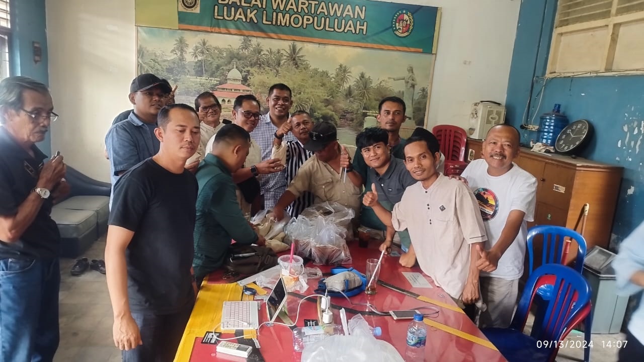 LIMAPULUH KOTA, METRO–Fajar Rillah Fesky, anggota DPRD Lima Puluh Kota, syukuran bersama dengan kawan-kawan wartawan di Balai Wartawan (BW) Luak Limo Puluah (Kota Payakumbuh dan Kabupaten Lima Puluh Kota) dengan makan Basamo, usai sholat Jumat.