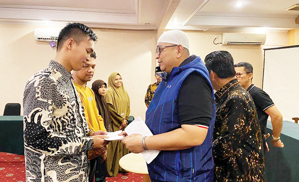 Didampingi oleh Ketua Tim Musabawah dan Seni Budaya Islam Kanwil Kemenag Afrizal, Andree juga menyerahkan dana motivasi kepada kafilah Sumatera Barat asal Kota Padang.