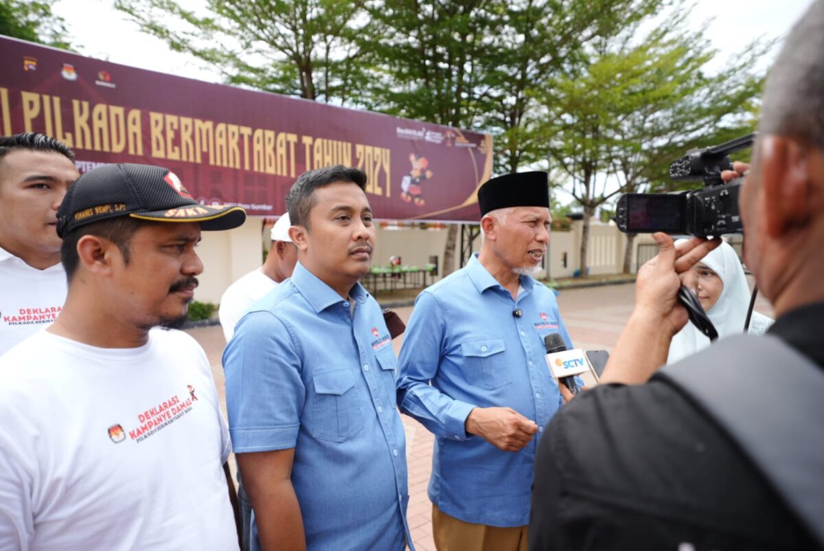 Padang – Pasangan Calon Gubernur (Cagub) Sumatera Barat (Sumbar) menghadiri kegiatan deklarasi kampanye damai Pemilihan Kepala Daerah (Pilkada) tahun 2024.