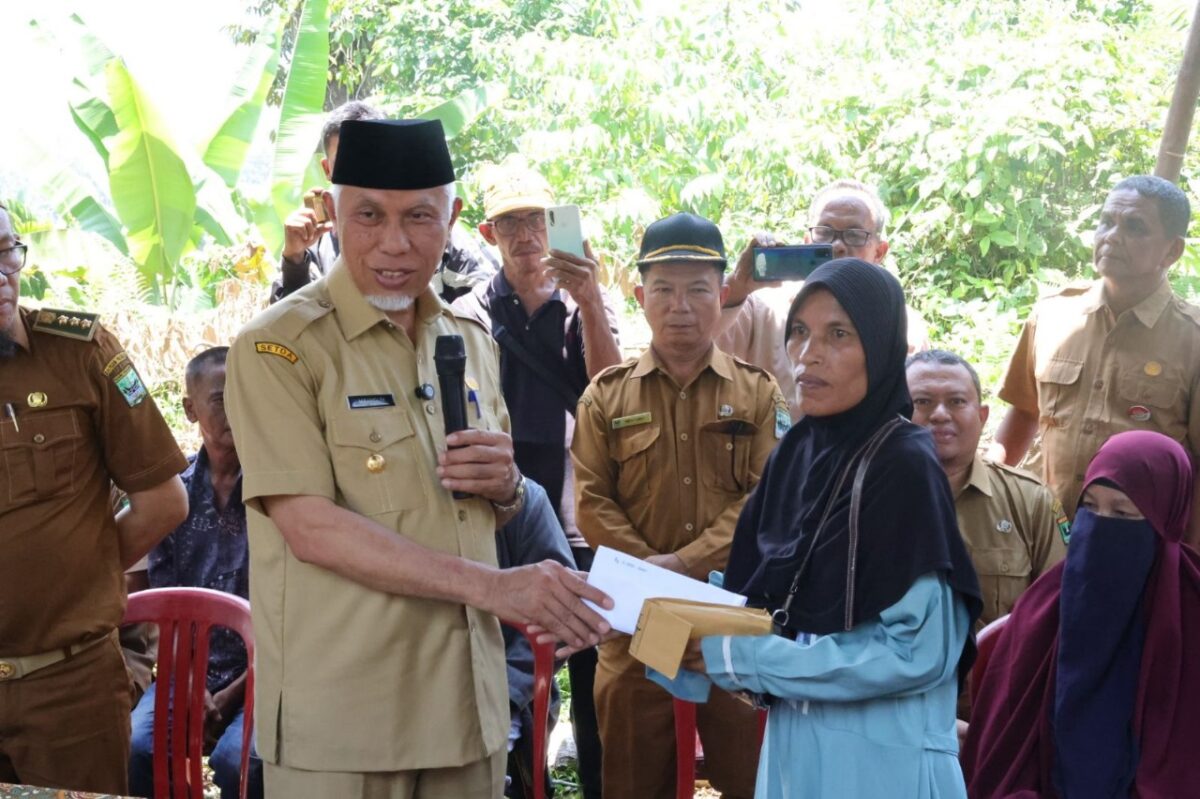 Selain itu, Mahyeldi juga turut menyerahkan bantuan sebesar Rp15 juta dari Bank Nagari sebagai bentuk simpati kepada keluarga korban.