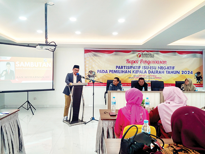 “Kita mengajak seluruh masyarakat Kota Payakumbuh untuk ikut melakukan pengawasan partisipatif pada pemilihan serentak nasional tahun 2024 ini. Dan kita sudah membentuk tim patroli media sosial,” ungkap Aan Muharman, pada kegiatan Rapat Pengawasan Partisipasipatif Isu-Isu Negatif Pada Pemilihan serentak Nasional 2024, di Hotel Mangkuto, Selasa (24/9).