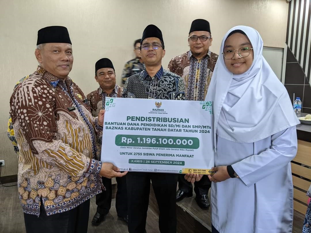 TANAHDATAR, METRO–Unit Pengumpul Zakat (UPZ) Kantor Kementerian Agama Kabupaten Tanah Datar mendistribusikan zakat kemenag berupa bantuan pendidikan kepada 551 siswa-siswi madrasah. Bantuan pendidikan ini bersumber dari zakat pegawai Kemenag yang dihimpun oleh Badan Amil Zakat Nasional (Baznas), di Aula Ikhlas Beramal Kantor kemenag se­tempat, Kamis, (26/9).