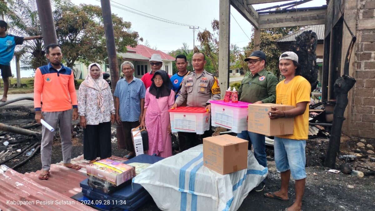 Bantuan diserahkan BPBD Pessel pada Hermanto, rumah nya terbakar. Yaitu, tenda keluarga 1 unit, kasur lipat 4 buah, matras 4 lembar, higienis kit 4 box, kompor portabel dua unit.