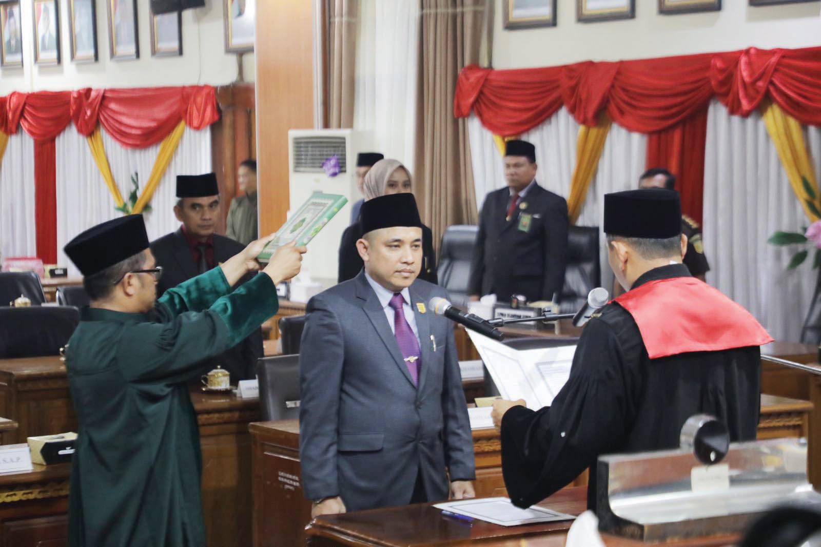 BUKITTINGGI, METRO–Benny Yusrial dari Fraksi Partai Gerindra secara resmi dilantik menjadi Wakil Ketua DPRD Kota Bukittinggi masa jabatan 2024-2029, Senin (30/9) di Aula Utama Kantor DPRD Kota BuÂkittinggi.