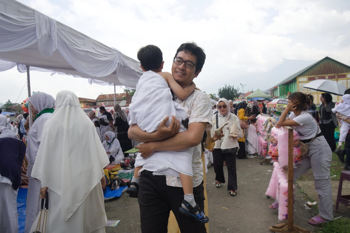 PDG. PANJANG, METRO–Ratusan orang tua antusias mendampingi anaknya saat mengikuti pelaksanaan Peragaan Manasik Haji Taman Kanak-Kanak (TK) se-Kota Padang Panjang di Lapangan Bancalaweh, Kamis (3/10).