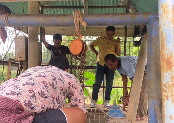 Bersama petugas bagian lapangan dan teknis dia melakukan pengecekan terhadap panel dari pompa yang rusak dan pipa yang bocor, sudah tua atau yang lepas.