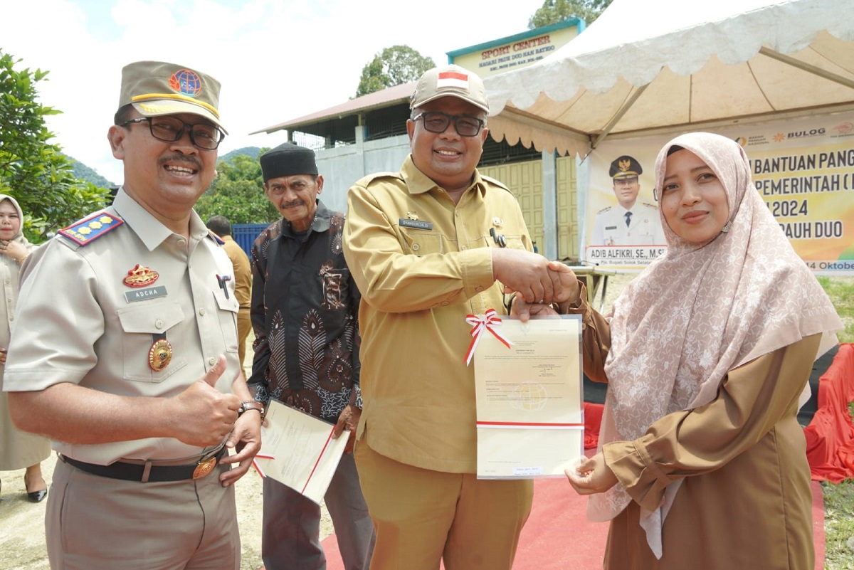 Bersamaan dengan bantuan beras ini, Pemerintah Kabupaten bersama dengan Kantor Pertanahan Solok Selatan juga menyerahkan sertifikat tanah masyarakat dari Program Pendaftaran Tanah Sistematis Lengkap (PTSL).