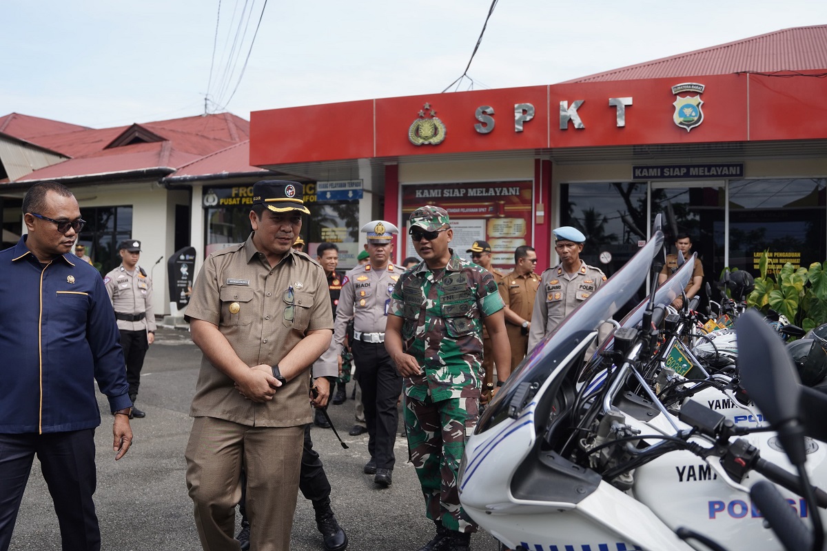LIMAPULUH KOTA, METRO–Pjs. Bupati Lima Puluh Kota Ahmad Zakri menghadiri sekaligus mengikuti Apel Gelar Pasukan Operasi Zebra Singgalanf, Senin, (14/10) di halaman Mapolres Lima Puluh Kota, Ketinggian, Sarilamak. Apel gelar pasukan dipimpin langsung Kapolres Lima Puluh Kota AKBP Syaiful Wachid diikuti para Personil Polres Lima Puluh Kota, jajaran TNI Kodim 0306/50 Kota, Dishub, Satpol PP, dan Dinas Perhubungan.