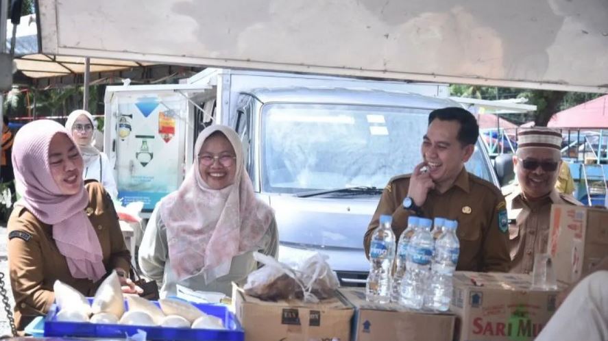 PANTAU—Penjabat Wali Kota Sawahlunto Fauzan Hasan dan Kepala DKP3 Heni Purwaningsih pantau pelaksanaan Gerakan Pasar Murah, beberapa waktu yang lalu.