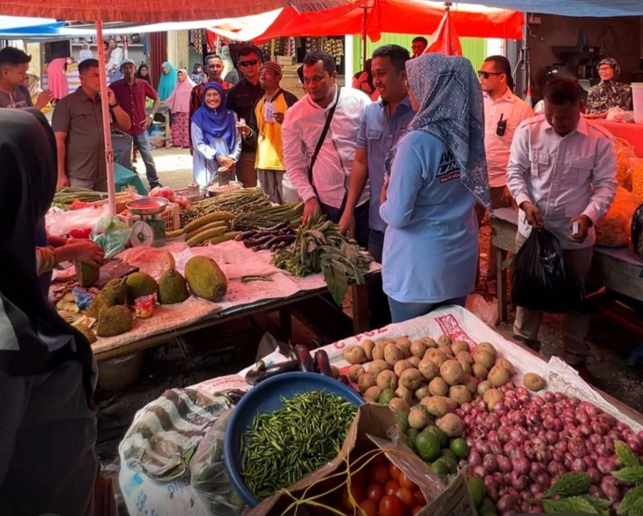 Dalam blusukan pasar tersebut, Vasko Ruseimy menyapa dan bersalaman dengan para pedagang pasar sambil menanyakan kondisi penjualan yang dialami oleh pedagang pasar saat ini.
