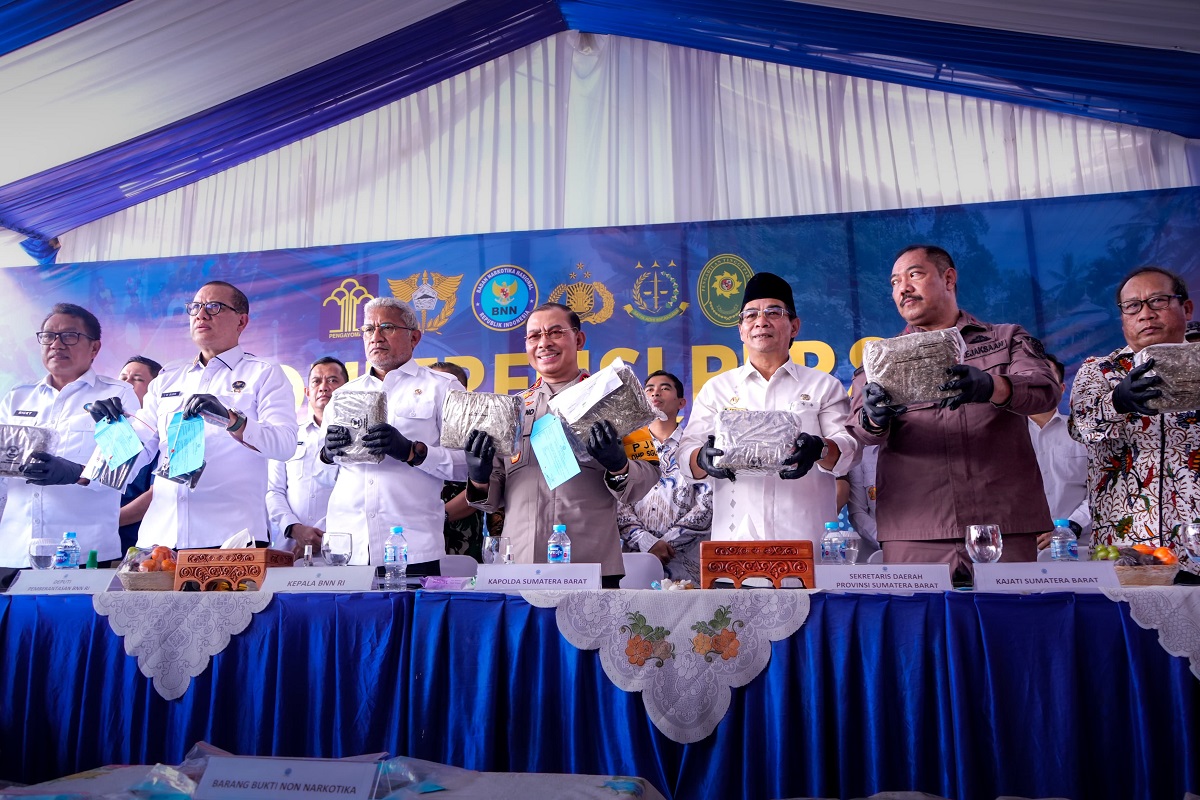 Operasi besar tersebut menjadi bukti komitmen BNN bersama berbagai pihak, termasuk pemerintah daerah dalam memberantas peredaran narkotika di Sumatera Barat. Kepala BNN RI berharap sinergi ini akan terus diperkuat demi menciptakan wilayah yang aman dari ancaman narkotika. “Hari ini negara hadir, kami akan terus memburu dan akan memiskinkan para perusak moral bangsa kita,”tegas Marthinus. Hadir dalam konferensi pers ini perwakilan dari Pengadilan Tinggi Sumbar, Kejati Sumbar, Walikota Padang, MUI Sumbar, LKAAM Sumbar, dan Persatuan Gereja. (fan)