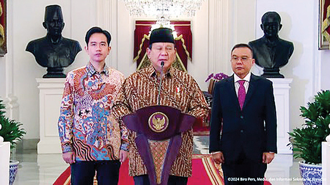 JAKARTA, METRO–Presiden RI Prabowo Subianto bersama Wakil Presiden Gibran Rakabuming Raka mengumumkan susunan kabinet yang diberi nama Kabinet Merah Putih.