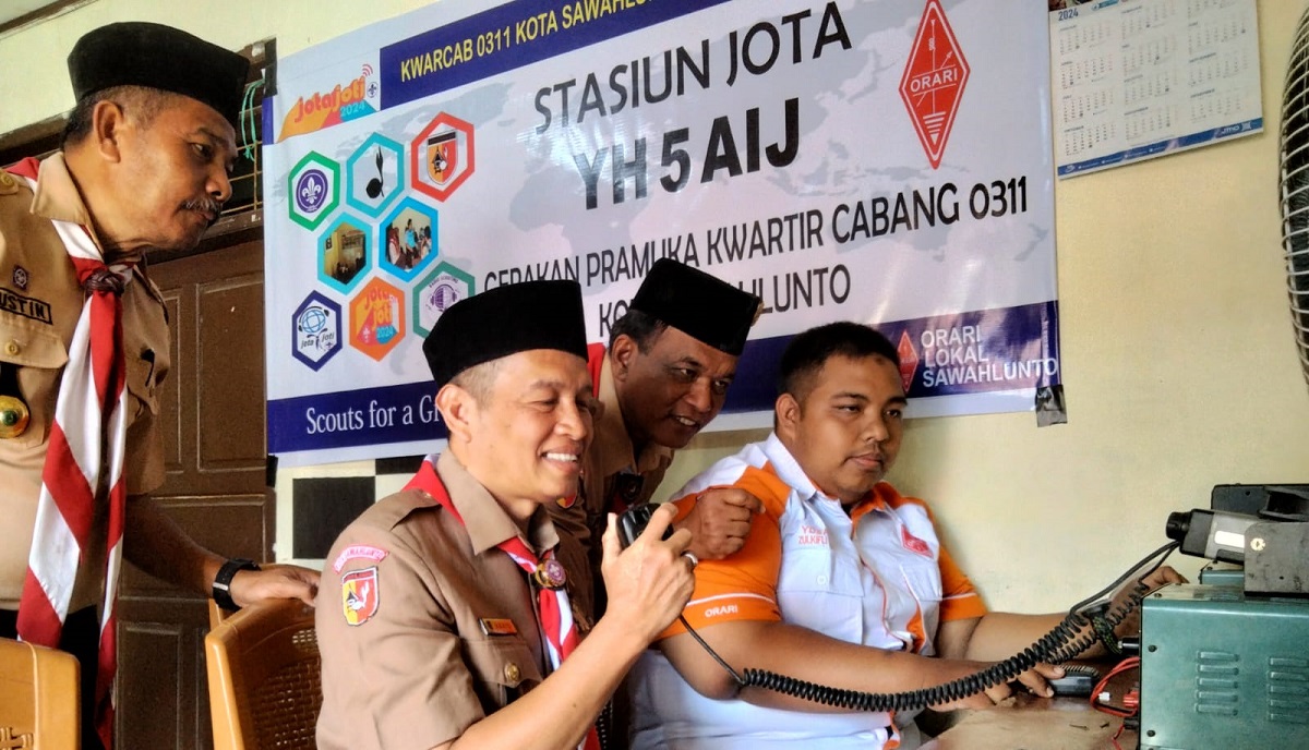 SAWAHLUNTO, METRO–Kwartir Cabang (Kwarcab) Gerakan Pramuka Kota Sawahlunto mengikuti Jamboree On The Air (JOTA) – Jamboree On The Internet (JOTI) tahun 2024. Kegiatan yang digelar 18 sampai 20 Oktober 2024 di station Sei Durian Kecamatan Barangin kota Sawahlunto itu, disaat pembukaan ditandai, Sekre/taris Kwarda 03 Sumbar QSO perdana bersama dengan Kwartir Cabang Sa­wahlunto dengan Call Sign YH 5 AIJ.